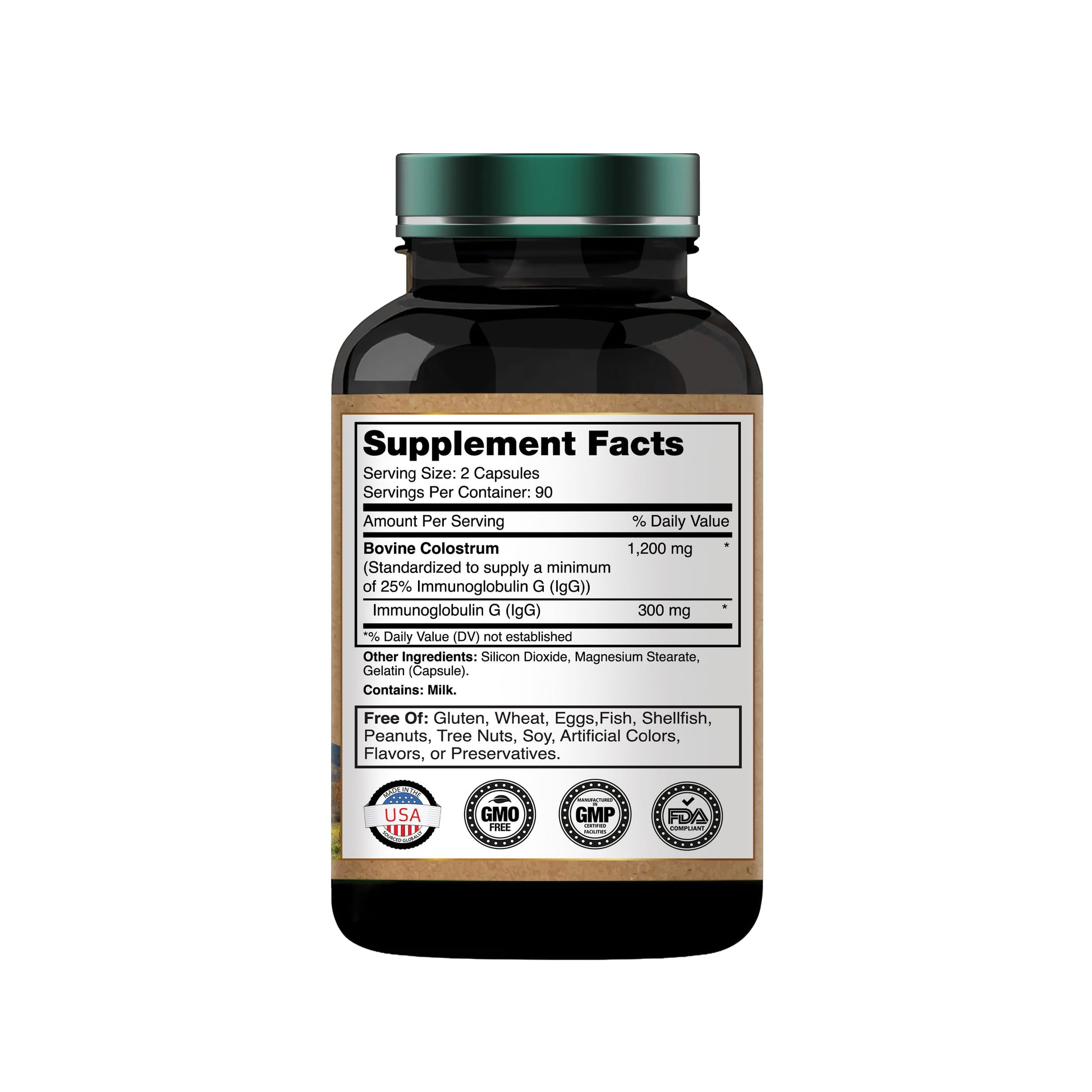 Colostrum Supplement 1,200 mg Per Serving, 180 Capsules | Standardized to 25% IgG (Immunoglobulin G) | Grass-Fed Bovine Colostrum Powder Caps | Immune Support Supplement | Non-GMO, Made in the USA!