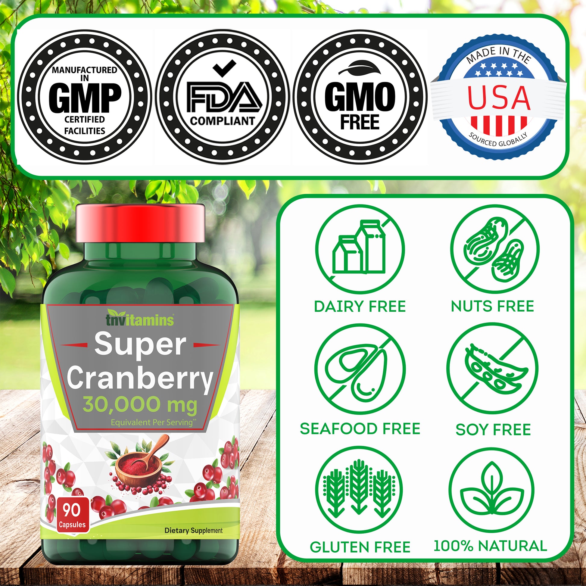 - ✔️ TNVitamins Cranberry Pills are Non-GMO, Free of Gluten, Yeast, Milk, Lactose, Soy, Artificial Color, Artificial Flavor, Artificial Sweetener, & Preservatives