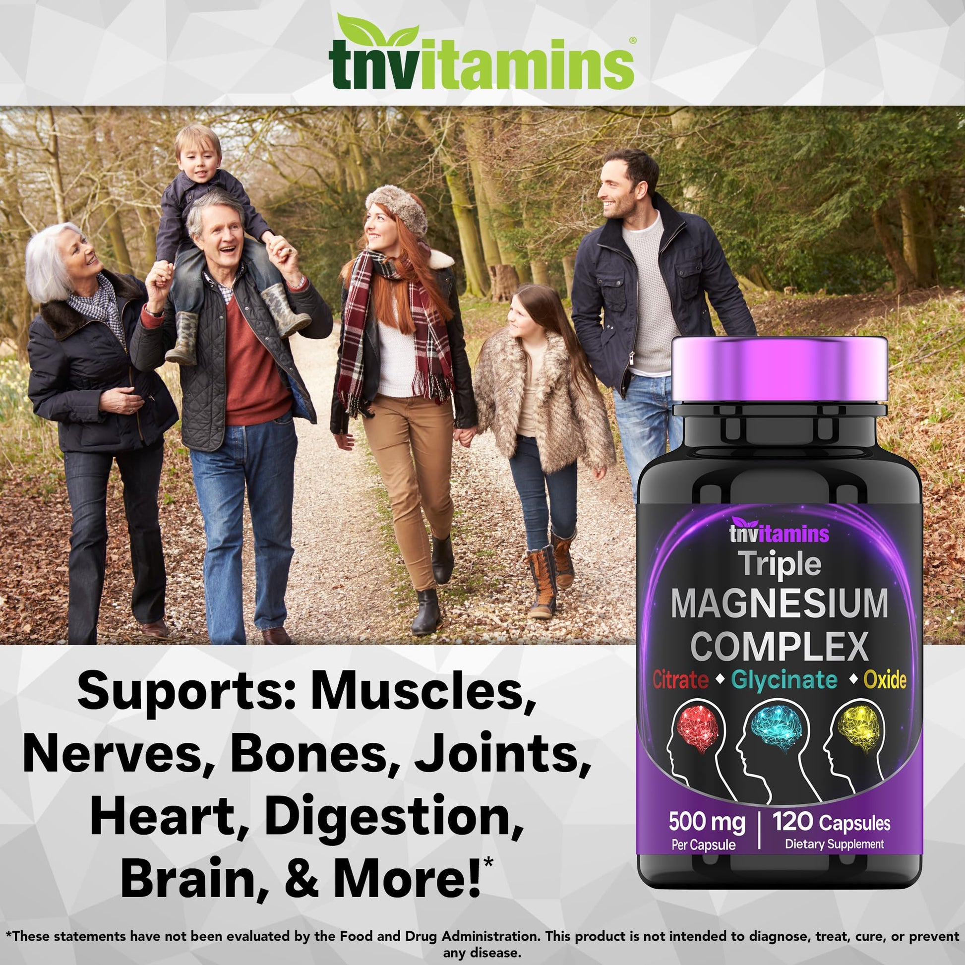 - ✔️ TNVitamins Triple Magnesium Complex Supplement 500mg - 120 Capsules